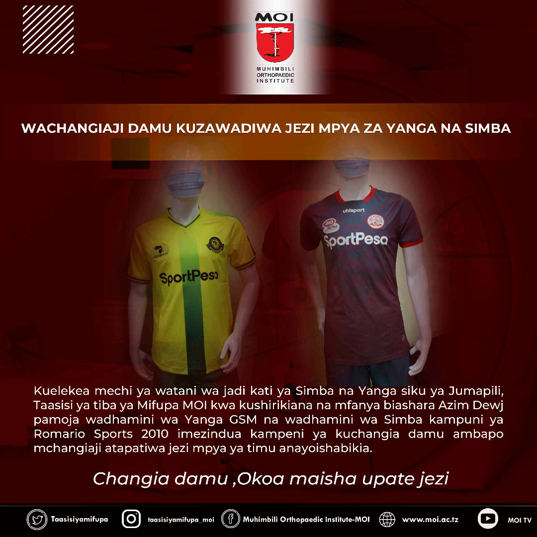 Kuelekea mechi ya watani wa jadi kati ya Simba na yanga siku ya Jumapili, Taasisi ya tiba ya Mifupa(MOI) kwa kushirikiana na Azim Dewj pamoja na GSM imezindua kampeni ya kuchangia damu ambapo mchangiaji atapatiwa jezi mpya ya Timu anayoishabakia.
